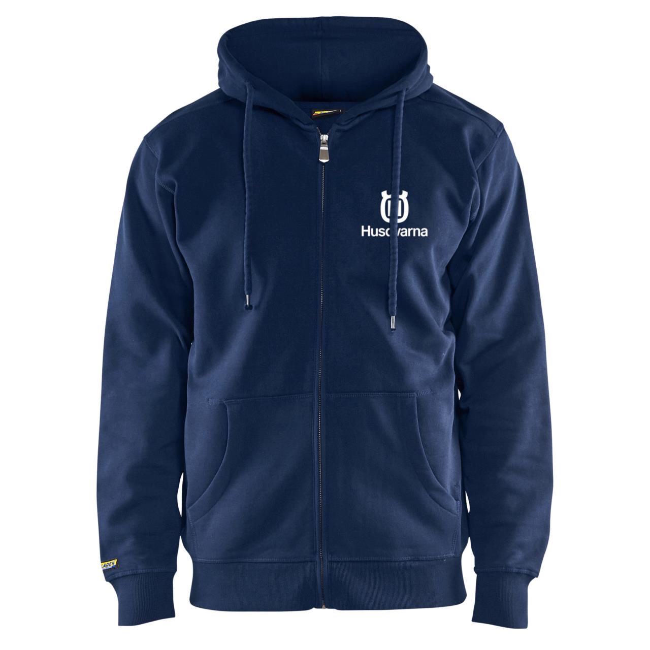 Sweatshirt in soft and durable material. A stylish garment with hood and zip, made from jersey with brushed inside. With husqvarna logo.